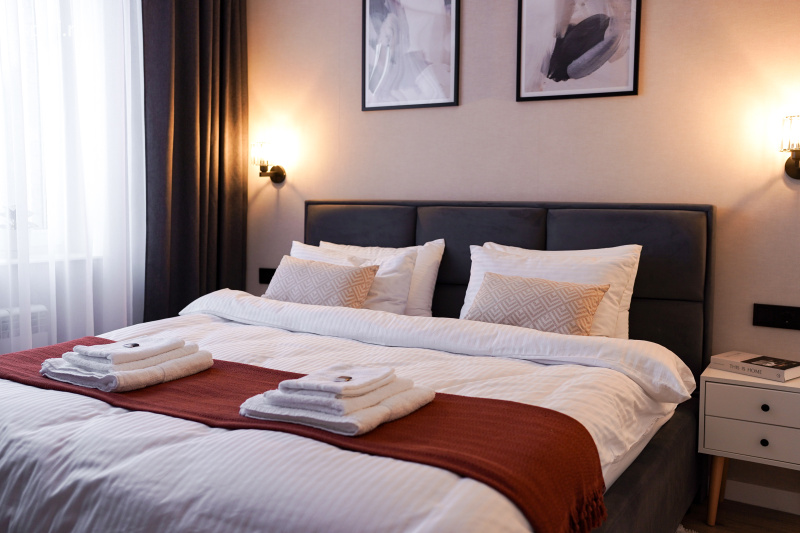 Современная квартира с изолированной спальней в новом доме с закрытой территорией. Отдельная спальня и кухня-гостиная с продуманной планировкой для комфортного проживания. В спальне большая кровать king-size с качественным матрасом, телевизор и уютная атмосфера для спокойного отдыха. Кухня-гостиная полностью оборудована: варочная панель, микроволновая печь, посудомоечная машина, фильтрованная вода, полный комплект посуды и приборов. Смарт-ТВ с подпиской Wink, стабильный Wi-Fi, кондиционер и водонагреватель. Стиральная машина, фен, гигиенический набор, постельное бельё и полотенца. Тихий двор без машин. В жилом комплексе продуктовые магазины и пункты выдачи WB и Ozon, рядом удобная большая парковка. Минимальный срок проживания — 2 суток. Бесконтактное заселение 24/7. Заезд с 14:00, выезд до 12:00. Обеспечительный платёж 3000 ₽. Заселение по паспорту с оформлением договора. Спокойный формат проживания без вечеринок. Для командировочных гостей предоставляются договор и отчётные документы. Статус самозанятого (НПД), чек формируется через «Мой налог». Связь с гостями поддерживается на протяжении всего проживания. Мы внимательно относимся к чистоте и деталям.